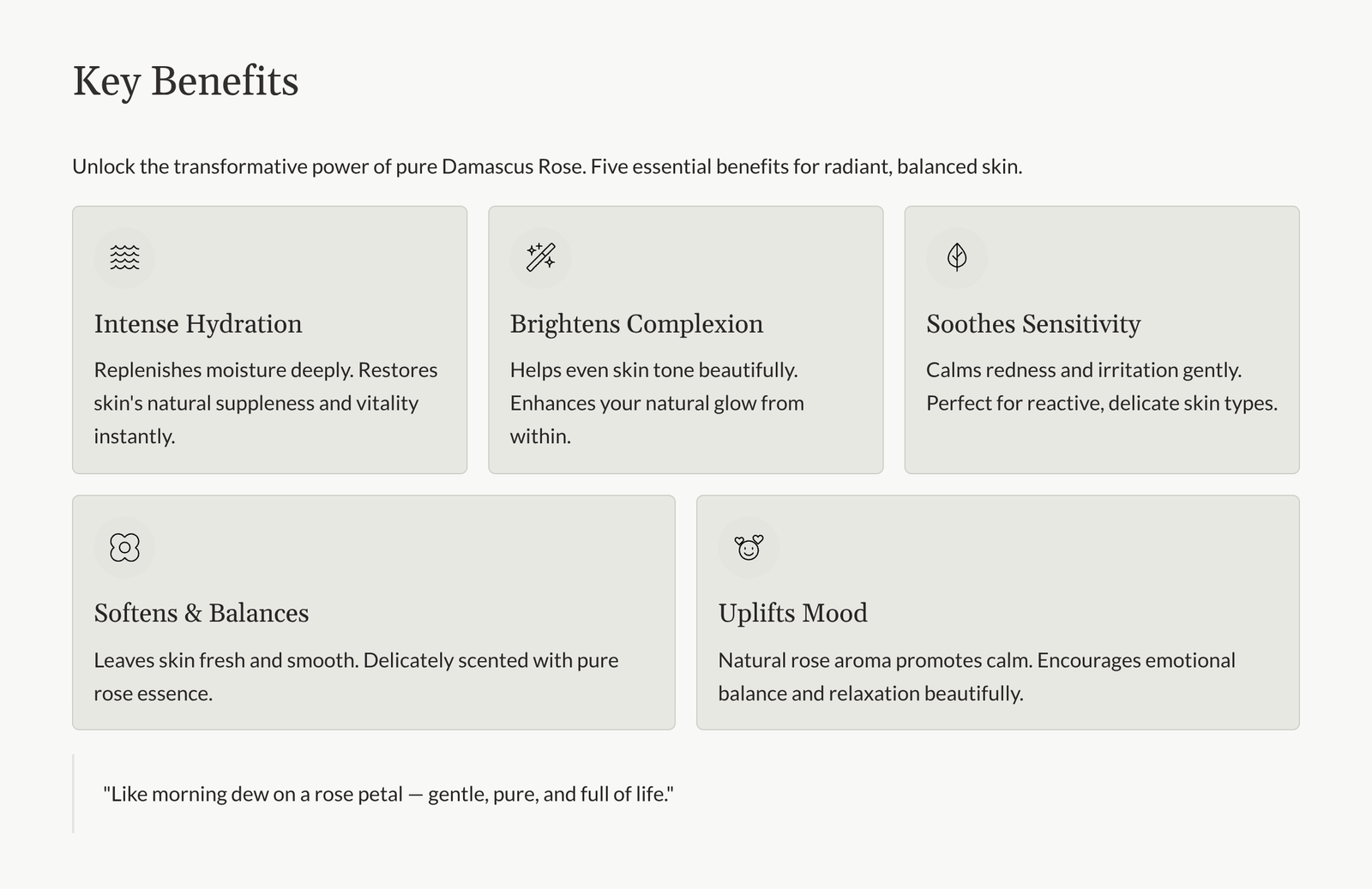“Like morning dew on a rose petal — gentle, pure, and full of life.”